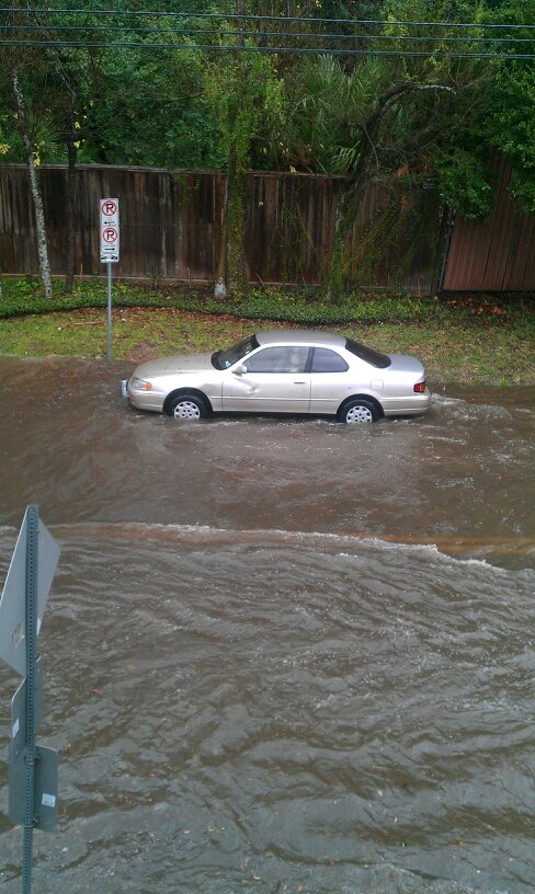 According to my cousin, the water had receded a foot before she took this picture. That was after she helped rescue someone else from their car and then helped a third stranger push his car three blocks to safety. In heels.